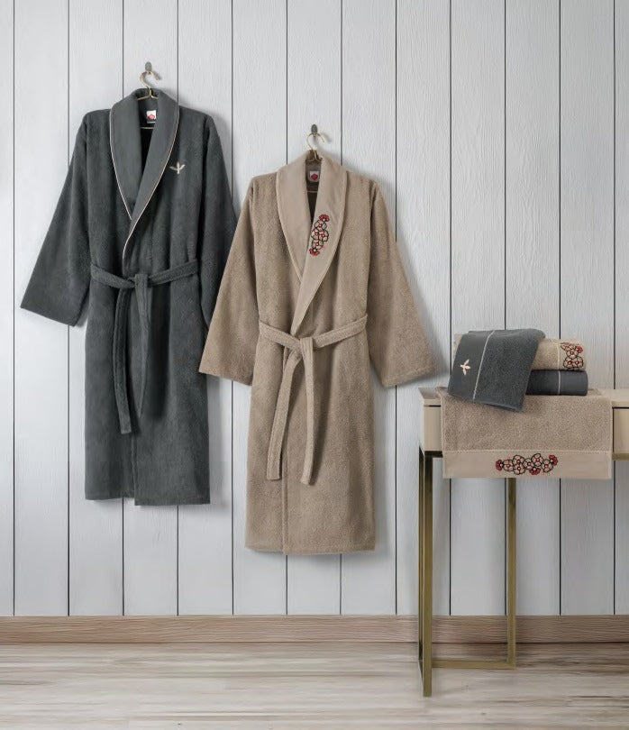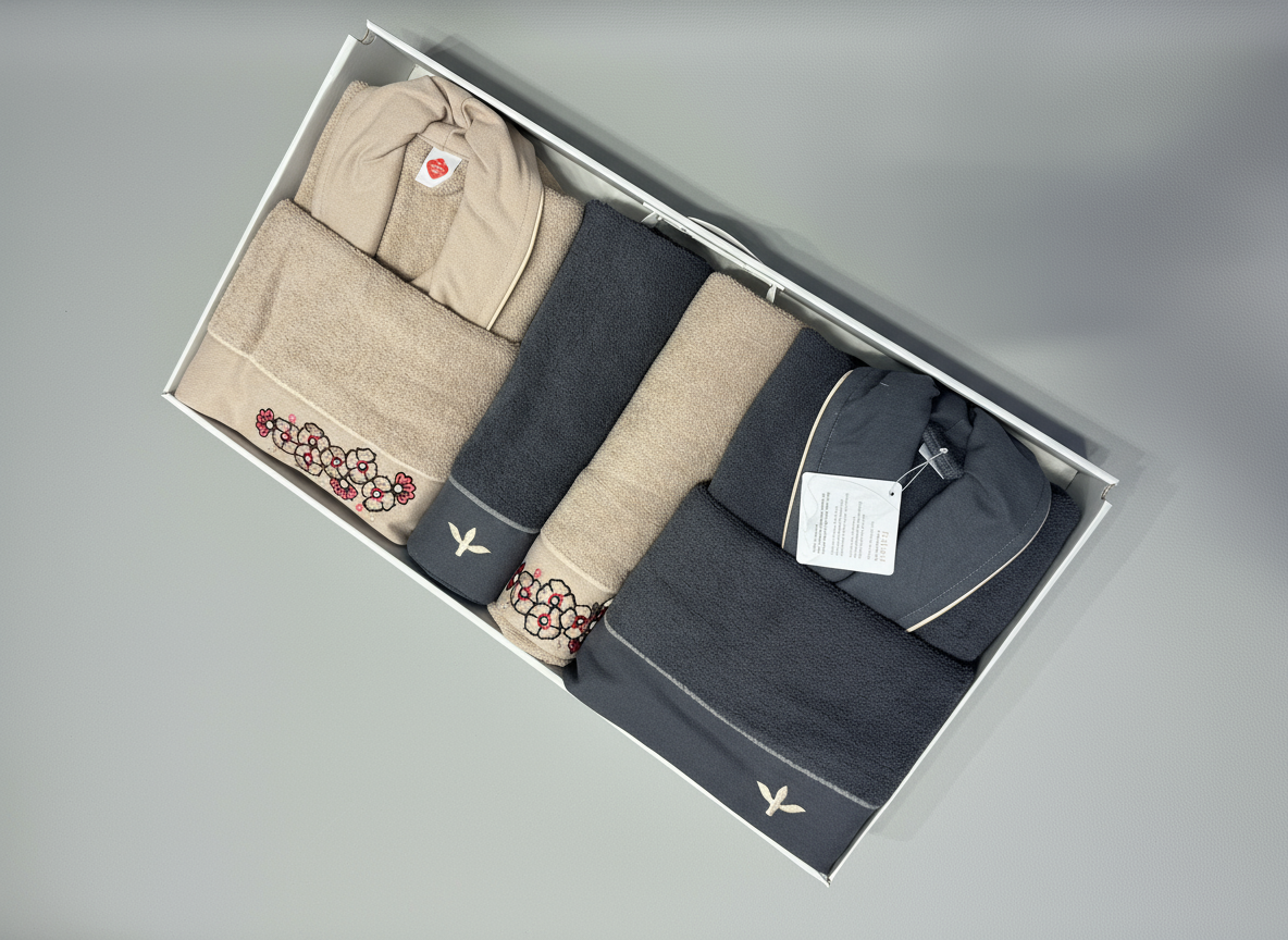 Entdecken Sie unsere exklusive Bademantel-Kollektion mit hochwertigster Baumwolle. Jedes Set enthält einen Premium-Bademantel (2kg Qualität) und ein passendes Handtuch – perfekt für Ihr tägliches Wellness-Ritual.